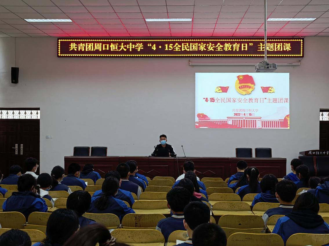 4月15日是第七個(gè)全民國(guó)家安全教育日。當(dāng)日,周口恒大中學(xué)舉辦“4·15全民國(guó)家安全教育日”主題團(tuán)課,進(jìn)一步推動(dòng)總體國(guó)家安全觀和國(guó)家安全法律法規(guī)走入廣大團(tuán)員青年,使國(guó)家安全意識(shí)深入人心。
