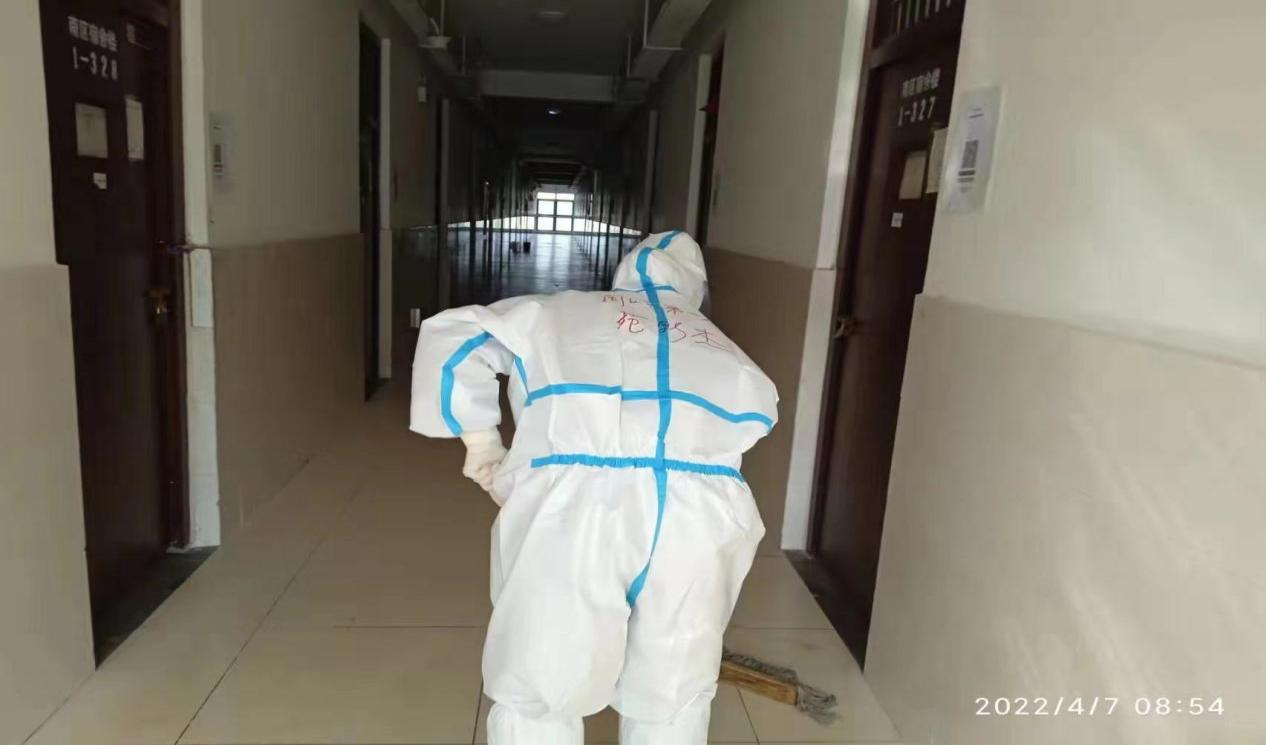 到了隔離點后,苑影杰才知道,為減少人員流動,隔離點配備的醫(yī)務(wù)工作人員比較少,每位進駐的護理人員每天除了基本的護理工作,還要承擔為隔離點群眾送飯,清理隔離房間的衛(wèi)生等工作,工作量還是比較大的。為了減少防護用品的消耗,每天進入隔離區(qū)工作都是四五個小時不吃不喝,一個班下來,全身透濕,臉、鼻子被防護服磨傷,口罩和護目鏡在臉上壓出來的印子,需要幾個小時才能消退。
