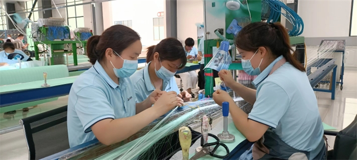 圍繞百億級(jí)裝備制造業(yè)產(chǎn)業(yè)集群發(fā)展,提升裝備制造業(yè)科技研發(fā)創(chuàng)新能力。以加快晶鑫科技上市為引領(lǐng),推動(dòng)傳統(tǒng)企業(yè)整體轉(zhuǎn)型升級(jí)。晶鑫科技產(chǎn)業(yè)園內(nèi)綠意盎然,高大寬敞的廠房?jī)?nèi)工人們?cè)诟髯詬徫簧嫌袟l不紊地忙碌著。拉絲車(chē)間,一臺(tái)大型編織機(jī)械靜靜地運(yùn)轉(zhuǎn)。機(jī)械的一頭,只有一名技術(shù)人員在操控臺(tái)上注視著屏幕。工廠負(fù)責(zé)人說(shuō),這是剛安裝調(diào)試不久的一臺(tái)進(jìn)口機(jī)器,自動(dòng)化程度和生產(chǎn)效率特別高,全國(guó)也沒(méi)有幾臺(tái)。編織車(chē)間,來(lái)自卞路口鄉(xiāng)董營(yíng)行政村的馬杰正在熟練地操作著一臺(tái)編織機(jī)。晶鑫科技辦公室工作人員李文玲說(shuō),那臺(tái)機(jī)器也是進(jìn)口設(shè)備,技術(shù)含量很高,只有業(yè)務(wù)精湛的工人才能操作。馬杰笑著說(shuō),由于她操作的機(jī)器先進(jìn)、技術(shù)要求高,工資也比一般人員要高出許多。來(lái)自北城街道辦事處的編制工周福榮,按計(jì)件每月也能拿到6000元左右的工資。晶鑫科技負(fù)責(zé)人說(shuō),由于疫情防控原因,部分外銷(xiāo)產(chǎn)品出口受到影響,但他們的產(chǎn)品在市場(chǎng)上仍是供不應(yīng)求。