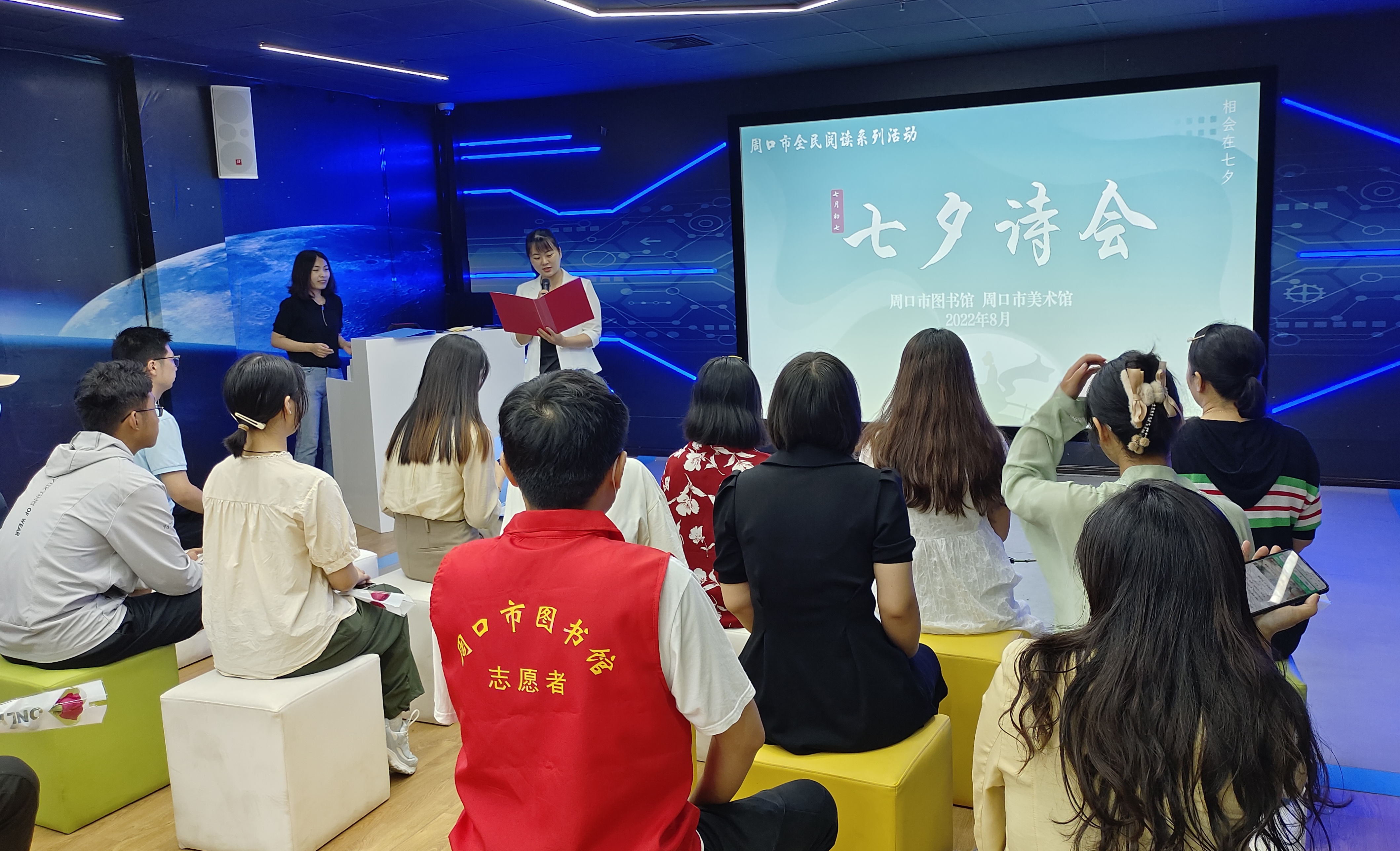 8月4日,市圖書館與市美術(shù)館在一樓智慧空間共同舉辦七夕詩(shī)會(huì),以詩(shī)傳情,開啟中國(guó)式浪漫,20多名詩(shī)詞愛好者參加活動(dòng)。