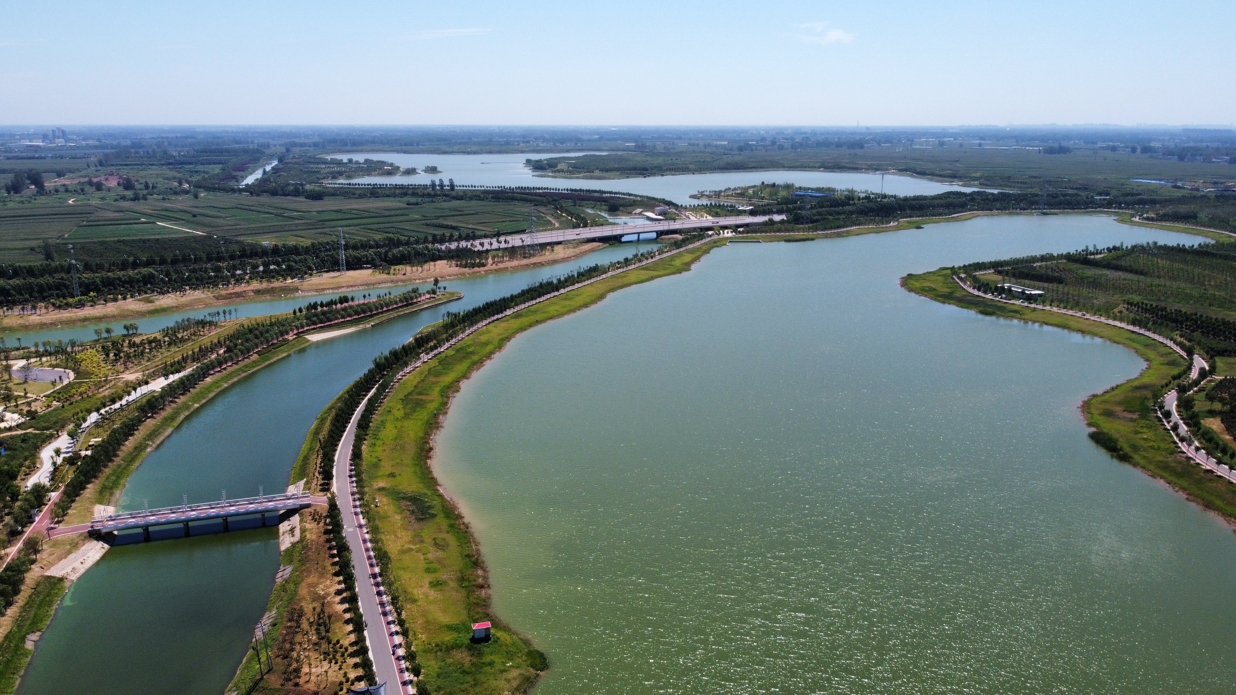 在周淮鐵路以東、大廣高速以西、流沙河以南、沙潁河以北,有一座集“灌溉調(diào)蓄、區(qū)域排澇、水質(zhì)保護(hù)、親水生態(tài)”于一體,融合“水安全、水環(huán)境、水文化、水經(jīng)濟(jì)”的綜合性基礎(chǔ)設(shè)施——永寧湖濕地公園。作為引黃調(diào)蓄項(xiàng)目,永寧湖濕地公園是中心城區(qū)十大民生工程之一,是周口市應(yīng)急備用水源地,主要功能為農(nóng)業(yè)灌溉調(diào)蓄,同時(shí)兼顧生態(tài)環(huán)境改善。永寧湖周邊同時(shí)規(guī)劃有一大批地標(biāo)性建筑,項(xiàng)目建成后,不僅能完善新區(qū)功能、提升城市形象,還能實(shí)現(xiàn)旅游產(chǎn)品與城市生活自然融會(huì)貫通,讓市民與游客共享濱水城市之美。①9 周口日?qǐng)?bào)·周道客戶端記者 劉俊濤 攝