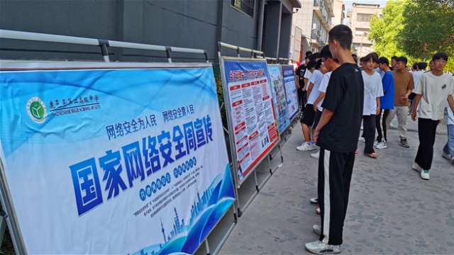 9月6日是國家網(wǎng)絡宣傳周校園日,鹿邑縣第二高級中學校園里整齊地擺放出數(shù)塊制作精美、內(nèi)容充實的網(wǎng)絡安全宣傳展板,引起師生們駐足觀看。