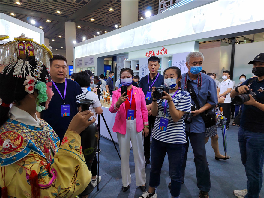 中國非物質(zhì)文化遺產(chǎn)博覽會,每兩年舉辦一屆,是非遺領(lǐng)域的全國性重要品牌活動,已成為展示非遺保護(hù)成果、宣傳非遺保護(hù)理念、引領(lǐng)非遺保護(hù)工作的重要平臺。本屆非物質(zhì)文化遺產(chǎn)博覽會為期5天,河南省有16個(gè)非遺項(xiàng)目、4個(gè)非遺美食企業(yè)參展,布置在文化底蘊(yùn)深厚的“行走河南·讀懂中國”展區(qū)。淮陽黑陶、仰韶彩陶、唐三彩、魯山窯、汝瓷、鈞瓷、登封窯、當(dāng)陽峪絞胎瓷、澄泥硯、??h泥咕咕燒制技藝在展廳一一亮相?;搓柡谔諢萍妓囀〖墏鞒腥藦堓x攜帶的部分作品以大氣、精美的文化底蘊(yùn)深深吸引著人們觀賞,各派非遺戲曲傳人也紛紛捧起他的黑陶作品展示中原古老的黑陶藝術(shù)文化。②15
