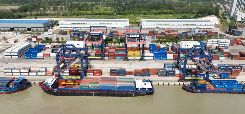 繁忙的淮安港。在自動化集裝箱碼頭,貨船頻繁進出,集裝箱不斷被起重機吊起、裝運,繁榮忙碌而又秩序井然。據(jù)了解,目前淮安全市碼頭岸線28公里,港區(qū)7個、碼頭116座、泊位389個,其中千噸以上泊位92個,年設計吞吐能力1.1億噸,其中集裝箱碼頭吞吐能力50萬標箱。2021年,淮安被交通運輸部確定為“全國內河主要港口”。運行內河集裝箱航線14條,上游覆蓋河南周口、山東、湖北、安徽等地,下游通達銜接江蘇沿江沿海、上海等地。2021年完成集裝箱吞吐量31.07萬標箱。