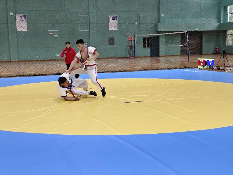 當日,河南省第九屆少數(shù)民族傳統(tǒng)體育運動會民族式摔跤競賽項目在周口師范學院老體育館開賽。絆跤是首個登場的跤種,9支代表隊參賽。該跤種以體重級別分組進行雙敗淘汰賽,共有52kg、62kg、74kg、87kg和87kg以上等5個公斤級,對應5個一等獎。經(jīng)過激烈角逐,來自漯河市、周口市和河南大學代表隊的5名選手獲得一等獎,我市選手李祥楷、劉小濤分別獲62kg、87kg一等獎。