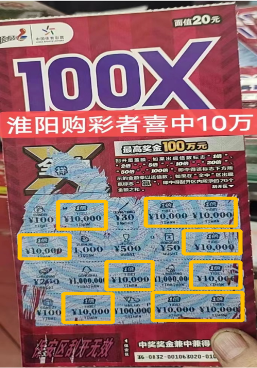 據(jù)悉,王先生所在的淮陽區(qū)新站鎮(zhèn)上只有一家編號(hào)為4116260032的體彩實(shí)體店,由于離自己居住的地方較近,每次路過這家體彩實(shí)體店就喜歡挑幾張?bào)w彩頂呱刮來試試手氣。當(dāng)天,王先生如往常一樣來到這家體彩實(shí)體店,在實(shí)體店代銷者的推薦下王先生挑選了幾張最近新上市的面值為20元的“超級(jí)加倍II”。沒想到其中一張竟刮出了10萬元大獎(jiǎng),王先生激動(dòng)地連忙找實(shí)體店代銷者確認(rèn),經(jīng)過認(rèn)真核對(duì)王先生確實(shí)是中得10萬元大獎(jiǎng)。