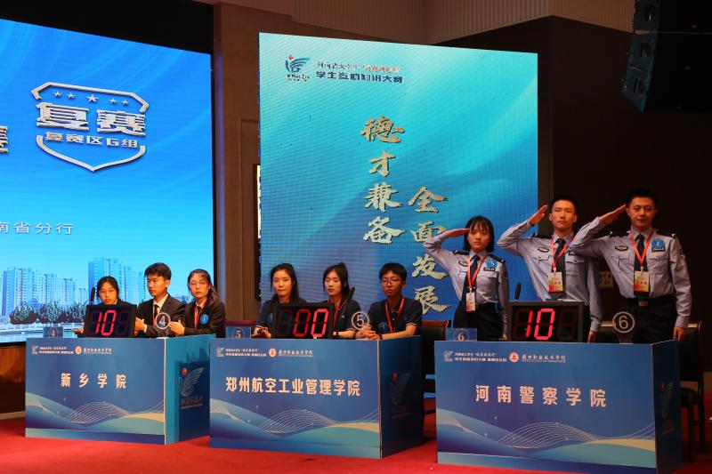大賽分為個人必答題、第一輪搶答題、集體必答題、第二輪搶答題和風險題五個環(huán)節(jié)進行。比賽中,來自全省21所高校的代表隊共84名選手同臺競技,各代表隊選手全神貫注、踴躍作答,展現(xiàn)出良好的素養(yǎng)。經(jīng)過初賽、復賽、決賽三輪7場激烈的角逐,鄭州航空工業(yè)管理學院、漯河職業(yè)技術學院、黃淮學院、新鄉(xiāng)學院、河南警察學院5支代表隊從中脫穎而出,成功晉級河南省大學生“誠信校園行”學生資助知識大賽總決賽。