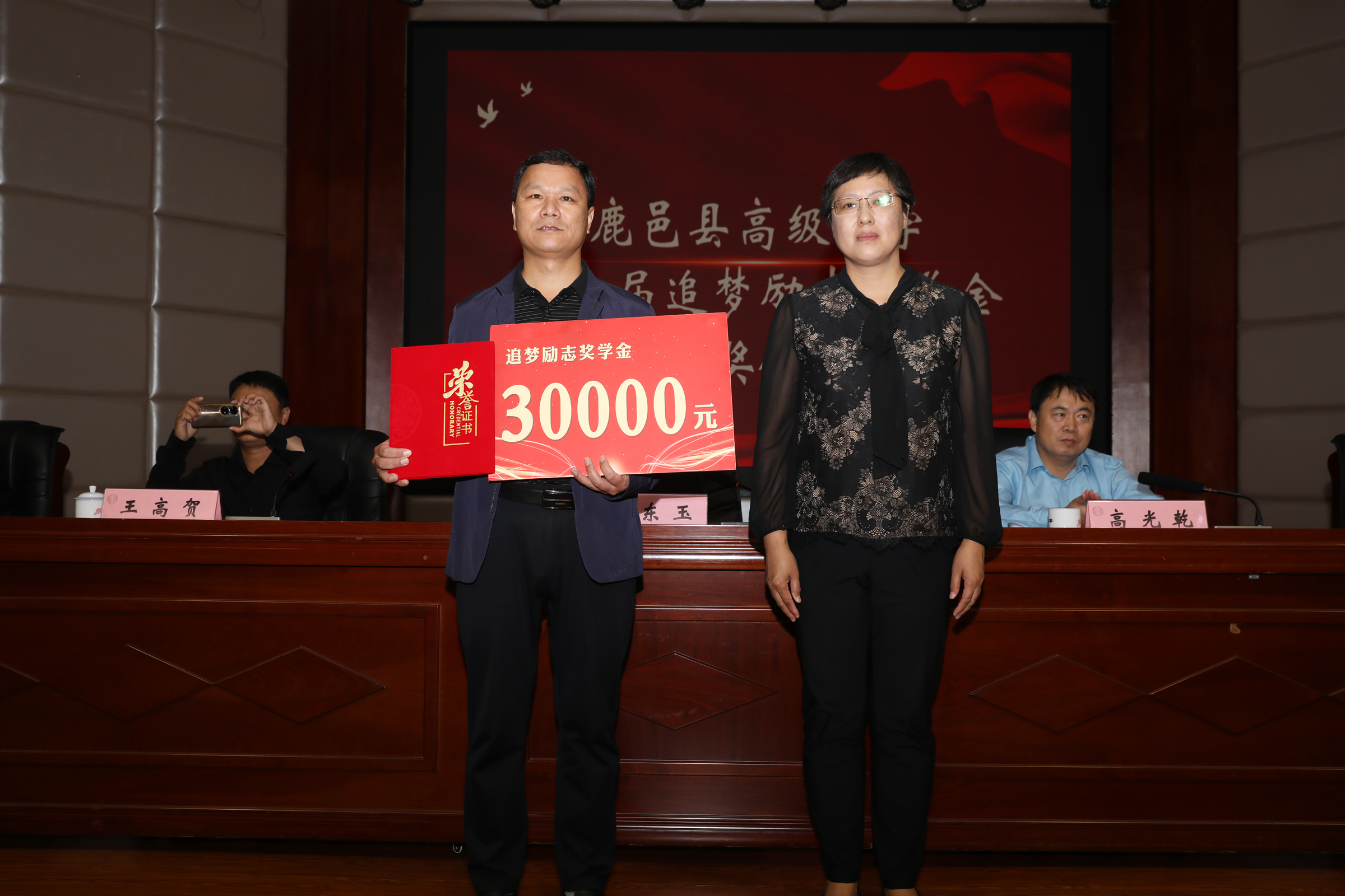 據(jù)了解,鹿邑縣高級中學(xué)追夢勵志獎學(xué)金是2022年由優(yōu)秀校友、暨南大學(xué)教授王高賀發(fā)起,部分校友和社會愛心人士自愿捐贈資金,在學(xué)校設(shè)立的勵志獎學(xué)金,用于獎勵母校優(yōu)秀的學(xué)生和教師團隊。此次頒獎儀式共頒發(fā)獎學(xué)金11萬元,周樂樂、張逍遙等40位同學(xué)和高小飛、毛東方等6個班級教師團隊獲得追夢勵志獎學(xué)金。在2023年高考中,陳孟康同學(xué)被北京大學(xué)飛行員班錄取,北清部全體教師獲得3萬元名校獎。