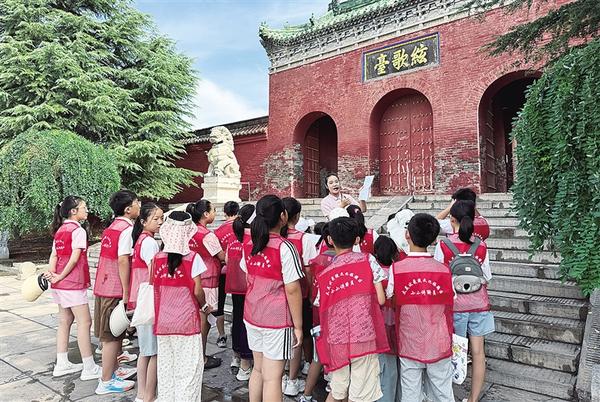 講解員為“小小講解員”集中培訓。8月11日,太昊伏羲陵文化旅游區(qū)“小小講解員”培訓活動圓滿落幕。此次活動中,淮陽區(qū)30余名青少年懷揣著對家鄉(xiāng)文化的熱愛,經過為期一周的集中培訓,具備基本的講解能力,為傳承淮陽千年文脈注入了新鮮血液。記者 侯俊豫 通訊員 莊秋薇 攝