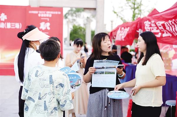 8月14日、15日,鹿邑縣人社局等單位在弘道苑廣場(chǎng)聯(lián)合舉辦“職引未來 筑夢(mèng)青春”專場(chǎng)招聘會(huì)。此次招聘會(huì)邀請(qǐng)28家企業(yè)參加,提供涵蓋食品加工、智能制造、電子商務(wù)、餐飲服務(wù)等領(lǐng)域優(yōu)質(zhì)就業(yè)崗位50余個(gè)。圖為招聘會(huì)現(xiàn)場(chǎng)。    記者 侯國(guó)防 通訊員 陳朝威 攝