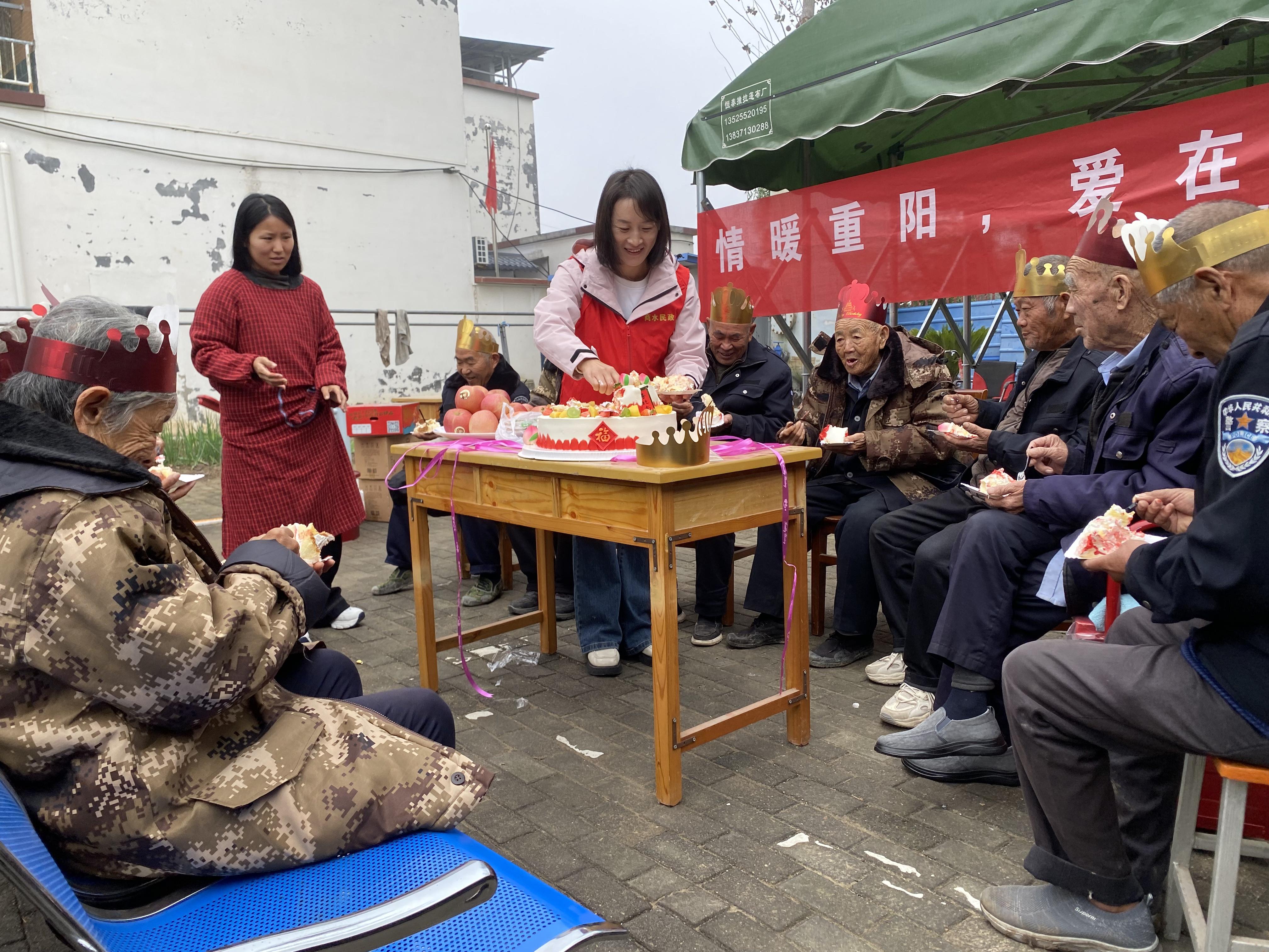 “來,大爺,我們都戴上生日帽,今天就算給我們過集體生日啦!”“大娘,您嘗嘗這個蛋糕味道怎么樣?好吃不好吃......”伴隨著優(yōu)美激揚的旋律,大家一起拍手唱起了《祝您生日快樂》。養(yǎng)老院護工、愛心商戶志愿者、陽光社會工作服務(wù)中心人員還把象征幸福甜蜜的“生日蛋糕”現(xiàn)場分發(fā)給老人們品嘗。