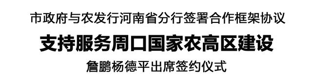 本報(bào)訊 (記者 李鳳霞) 11月20日,周口市人民政府與中國農(nóng)業(yè)發(fā)展銀行河南省分行舉行支持服務(wù)周口國家農(nóng)高區(qū)建設(shè)合作框架協(xié)議簽約儀式。市長詹鵬,中國農(nóng)業(yè)發(fā)展銀行河南省分行黨委書記、行長楊德平出席簽約儀式并舉行工作會(huì)談。中國農(nóng)業(yè)發(fā)展銀行河南省分行副行長杜軍、副市長孔陽代表雙方簽約。