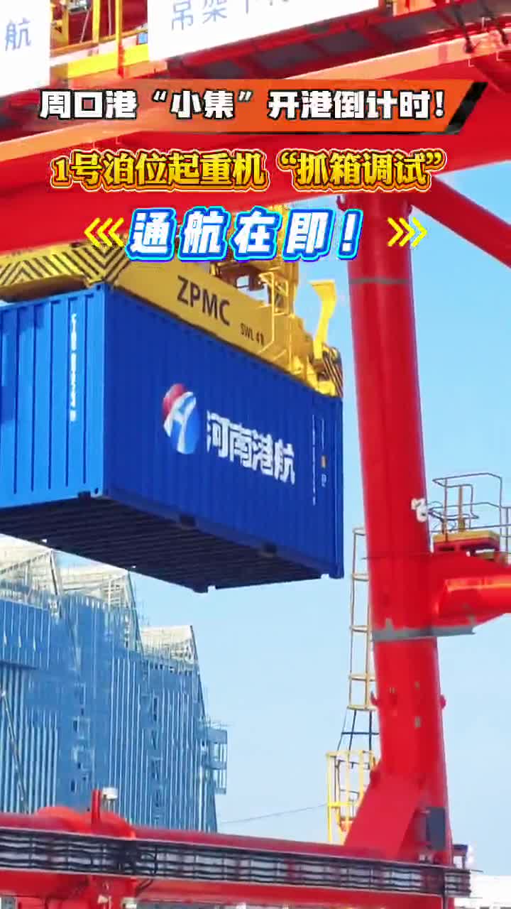 周口港“小集”開港倒計(jì)時(shí)!1號(hào)泊位起重機(jī)“抓箱調(diào)試”,通航在即!