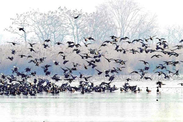 近日,近千只野鴨齊聚淮陽龍湖國家濕地公園,或翩躚起舞或嬉戲游弋,構(gòu)成一幅靈動(dòng)的冬日生態(tài)畫卷。
