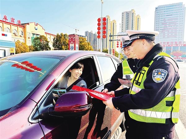 1月10日是第六個中國人民警察節(jié)。當(dāng)天,市公安局高速公路交通警察支隊一大隊在寧洛高速周口南出入站口開展交通安全宣傳活動,向過往司機贈送印有安全行車提醒的“平安福”。