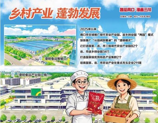 2025年以來,周口市統(tǒng)籌發(fā)展農(nóng)產(chǎn)品初加工、精深加工和綜合利用加工,全域推廣現(xiàn)代農(nóng)業(yè)產(chǎn)業(yè)園、返鄉(xiāng)創(chuàng)業(yè)園“兩園”模式,加快推廣“從田間到餐桌”的“澄明模式”,不斷提升鄉(xiāng)村產(chǎn)業(yè)發(fā)展質(zhì)效,已打造國家、省、市三級現(xiàn)代農(nóng)業(yè)產(chǎn)業(yè)園82個,省、市返鄉(xiāng)創(chuàng)業(yè)園34個,打造國家級優(yōu)勢特色產(chǎn)業(yè)集群2個,培育國家、省、市農(nóng)業(yè)產(chǎn)業(yè)化重點(diǎn)龍頭企業(yè)211家。
