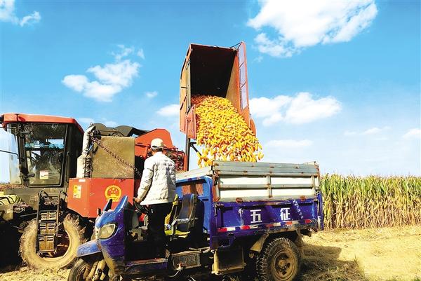 10月14日,扶溝縣大李莊鄉(xiāng)常崗村村民抓住天氣晴好的短暫時機搶收玉米。