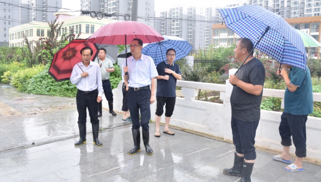 7月22日,開發(fā)區(qū)黨委書記王文峰帶領(lǐng)區(qū)直有關(guān)部門檢查河道及城市道路防汛工作。開發(fā)區(qū)管委會副主任李鵬,副調(diào)研員趙愚、王靜等參加活動(dòng)。