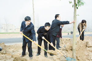 在全區(qū)多個植樹點,區(qū)四大班子領(lǐng)導(dǎo)與全區(qū)各單位干部職工加入到植樹護(hù)綠的行動中(如圖)。為確保植樹造林活動有效開展,川匯區(qū)委、區(qū)政府向48家區(qū)直單位下達(dá)了義務(wù)植樹任務(wù)通知書,任務(wù)實施單位包苗木、包栽植、包成活、包管護(hù)。2015年,川匯區(qū)計劃造林2749畝,森林撫育及改培造林300畝,新建林業(yè)生態(tài)園1處、花卉苗木基地200畝、綠化社區(qū)及林業(yè)生態(tài)示范村9個,打造創(chuàng)模精品線路1條。