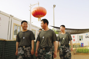 中國維和部隊首次配備單兵“身份識別牌”    5月26日,在馬里加奧維和任務(wù)區(qū),佩戴著“身份識別牌”的中國維和部隊成員值勤歸來。與以往不同的是,新一批維和官兵胸前,都佩戴著一個用中、英、法三種文字標(biāo)記姓名、血型、籍貫和編號信息的“身份識別牌”。這是中國維和部隊根據(jù)執(zhí)行維和任務(wù)需求,首次為官兵配備單兵“身份識別牌”。 新華社發(fā)
