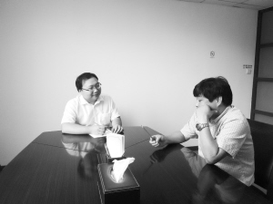 龐少磊與代理人在討論訴訟細(xì)節(jié)。